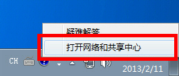 在 Windows 界面的右下角右击网络图标,并点击 "打开网络和共享中心"